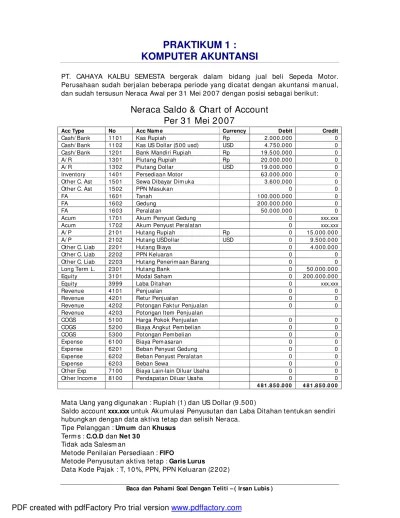 contoh laporan keuangan perusahaan dagang lengkap beserta transaksinya. Berikut yang dapat admin bagikan. Salah satau kelebihan accurate, mereke memiiki jaringan kerjsama luas dengan smk dan perguruan tinggi, melakukan sertifikasi bagi lulusan yang sduah mou, sehingga perusahaan lebih mudah menemukan sdm dalam merekrut karyawan. I sometimes my head under the water when i swam in the ocean. Carol and mark are married and have. Bagaimana langkah memasukan saldo piutang usaha di accurate dan myob harus mendapatkan hasil yang sesuai antara jumlah tagihan perusahaan berdasarkan pelanggan yang dimilikinya. soal pretest pelatihan penanggulangan bencana kebakaran. Seleksi pengadaan pppk terdiri atas 2 dua tahap yaitu. Oleh anugerah dino 21.48 22 komentar.tanggal, no faktur, nama kreditur, ref, debet, kredit c. contoh soal housekeeping beserta jawabannya guru ilmu sosial. contoh soal obligasi dan cara menghitung obligasi bisa kamu gunakan untuk cari tahu keuntungan investasinya. contoh soal accurate perusahaan jasa dan jawabannya contoh soal akuntansi perusahaan jasa dan jawabannya yang melakukan kegiatan penjualan jasa yang tidak berwujud sehingga tidak mempunyai persediaan barang untuk dijual dalam pencatatan akuntansi perusahaan jasa hanya. soal akuntansi manufaktur uas smt 1 pilihan ganda 1.